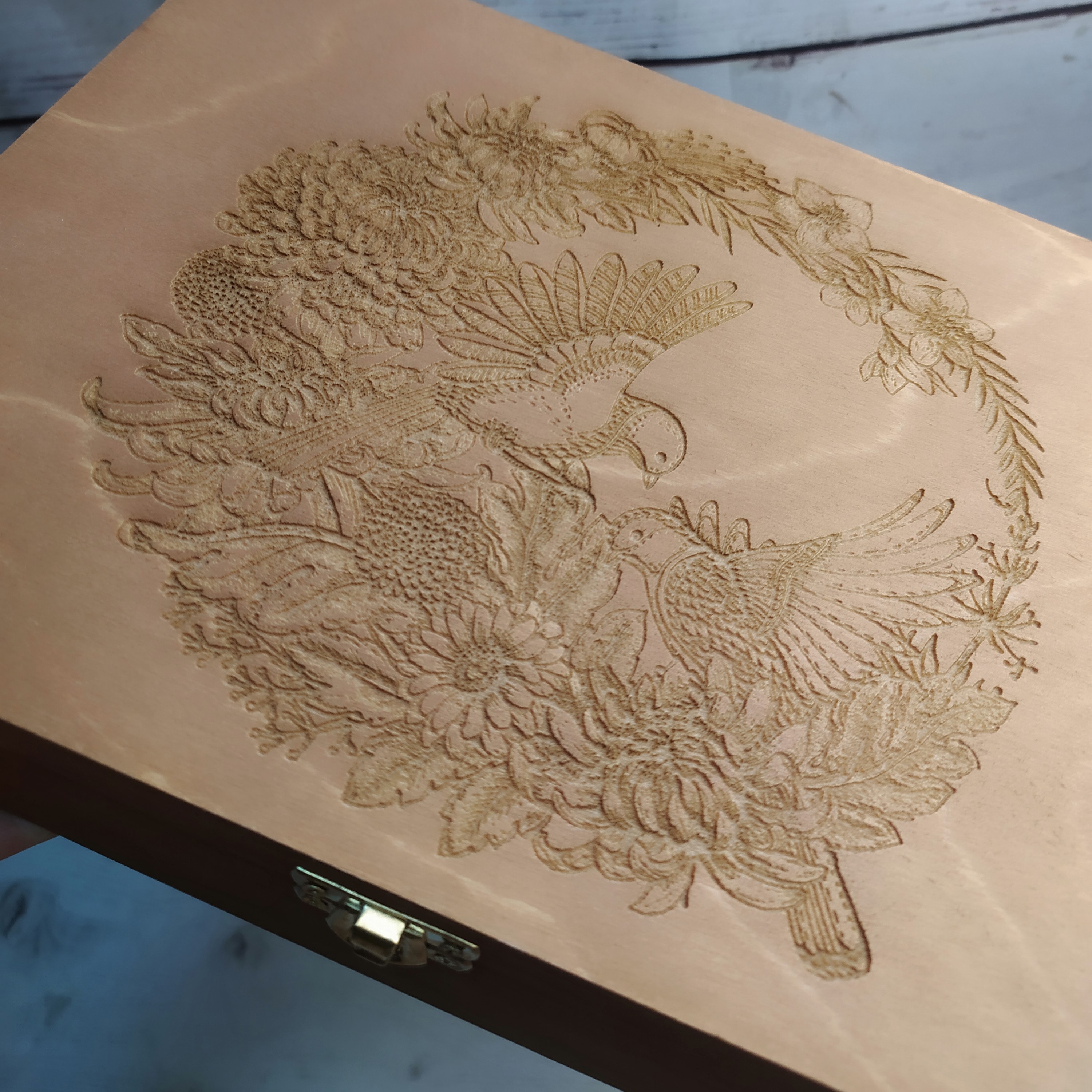 Шкатулка деревянная с электронным модулем и магнитным датчиком - играет записанные мелодии при открытой крышке.