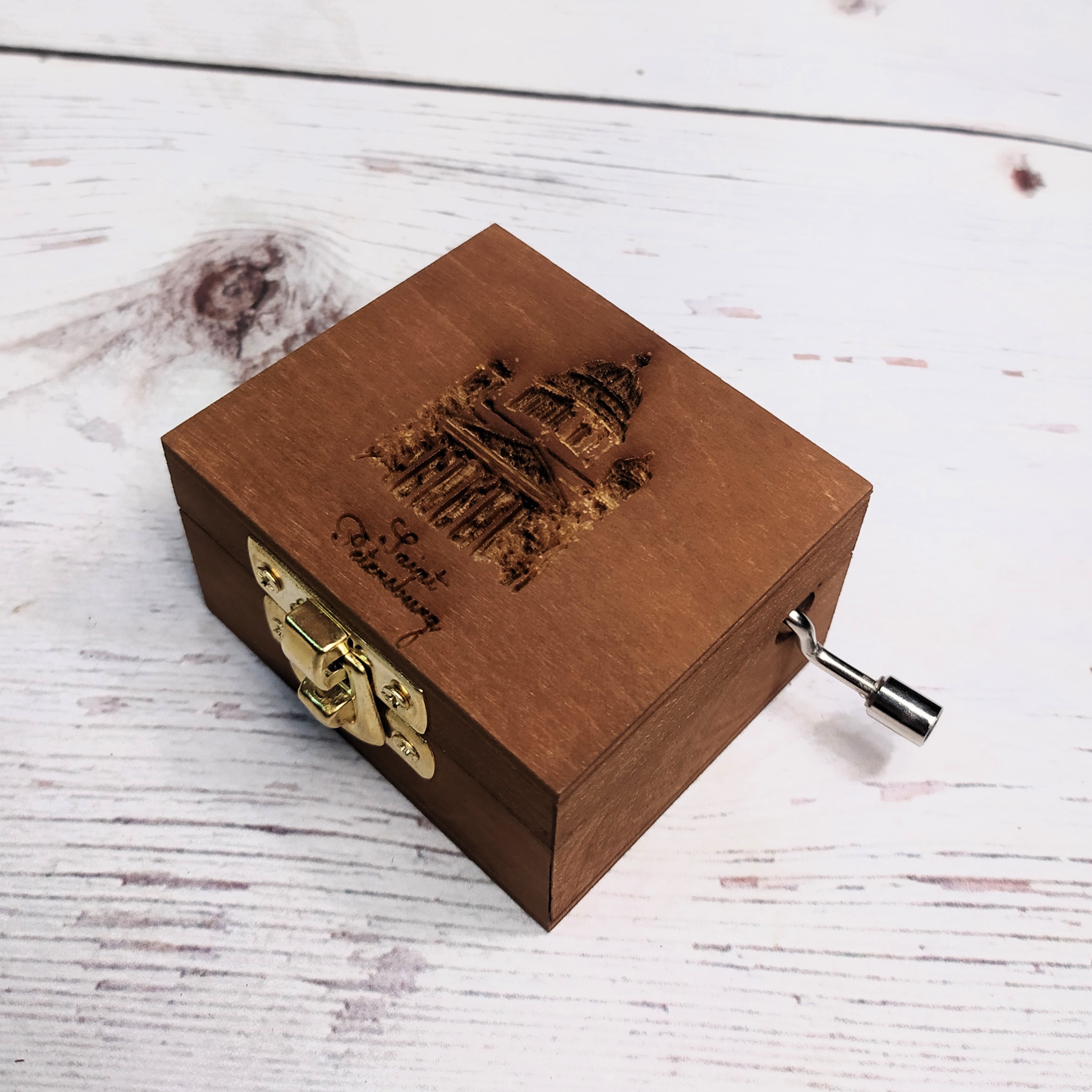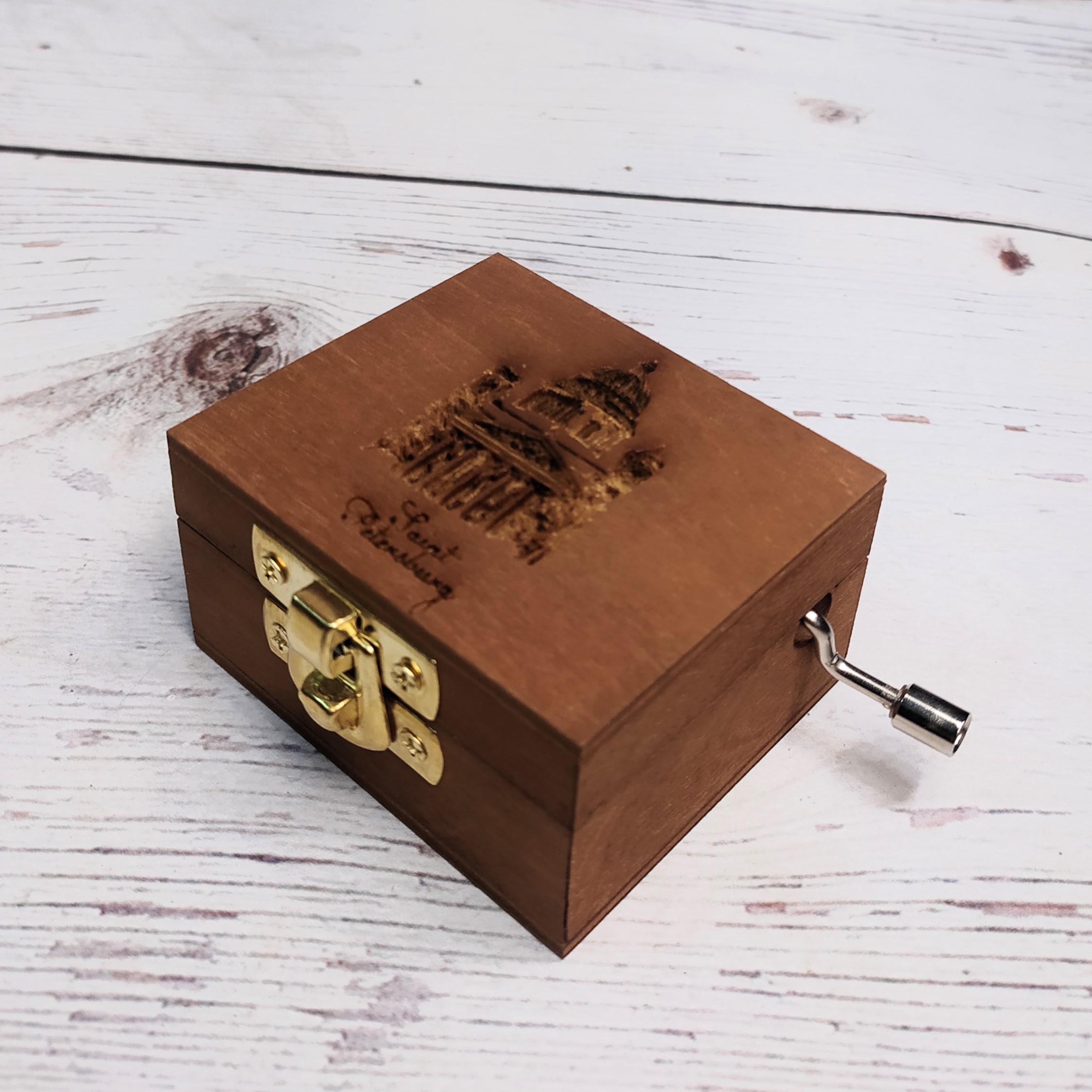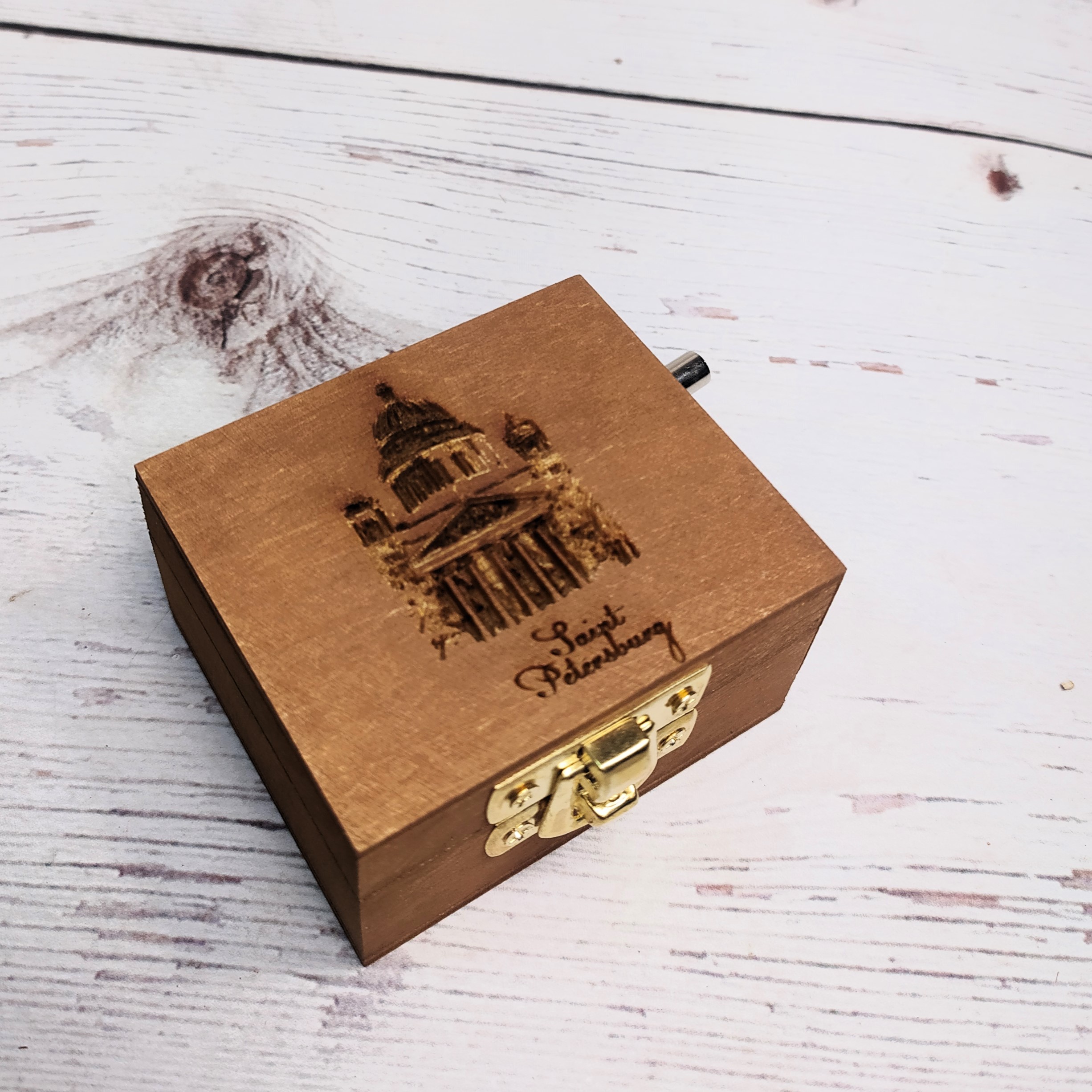 Музыкальная деревянная шкатулка-шарманка Санкт Петербург Исакиевский собор с мелодией Гимн России
