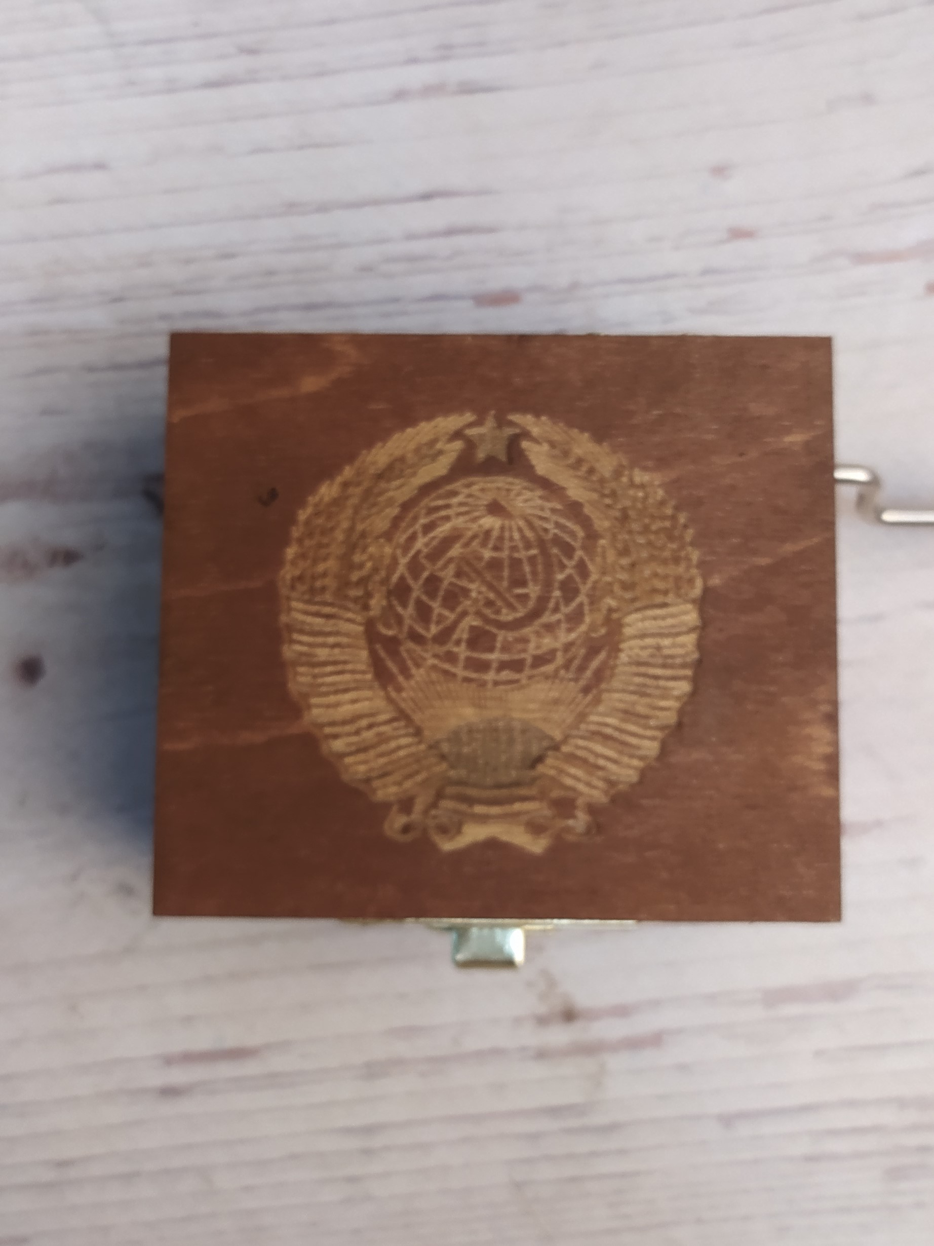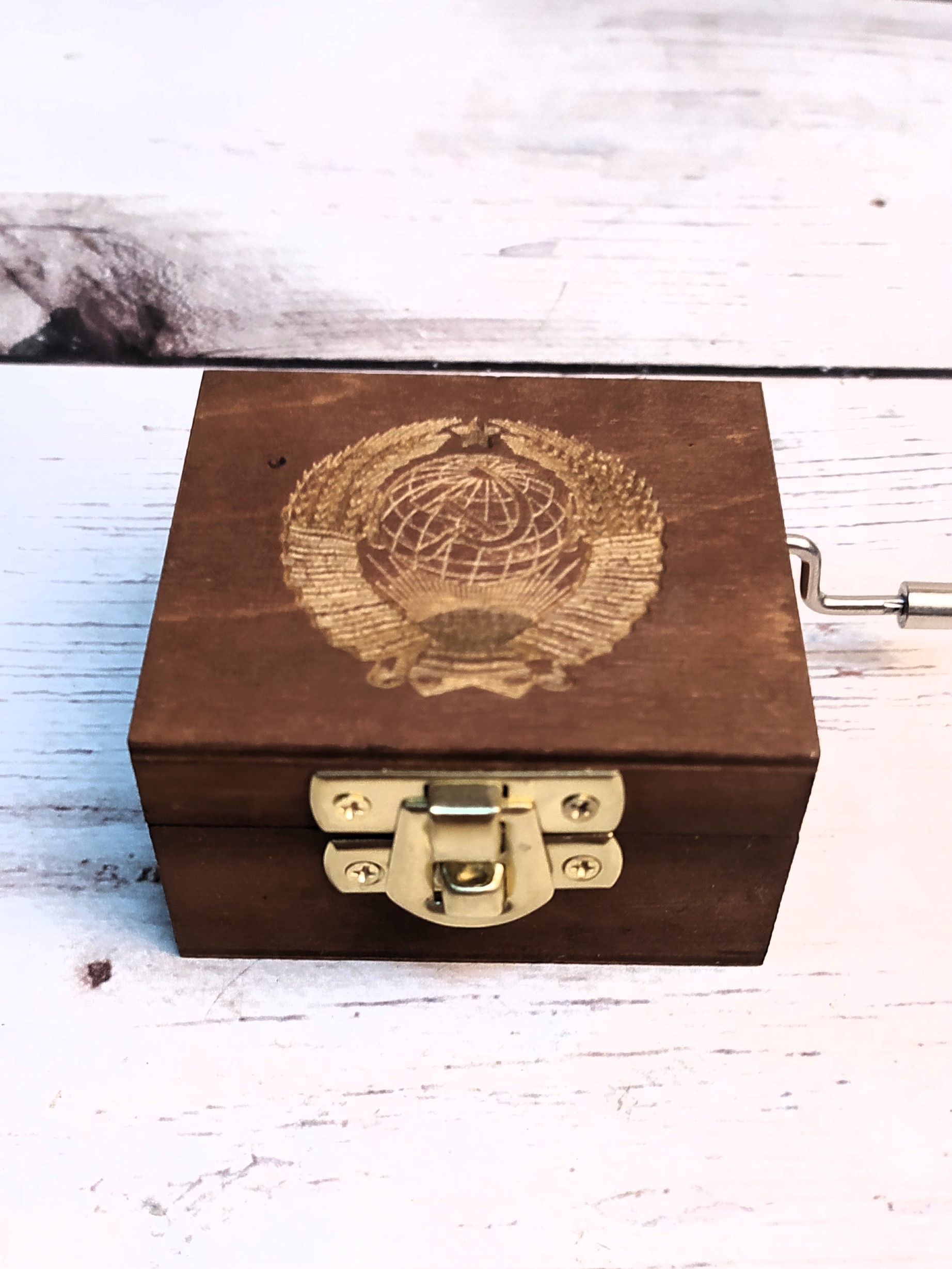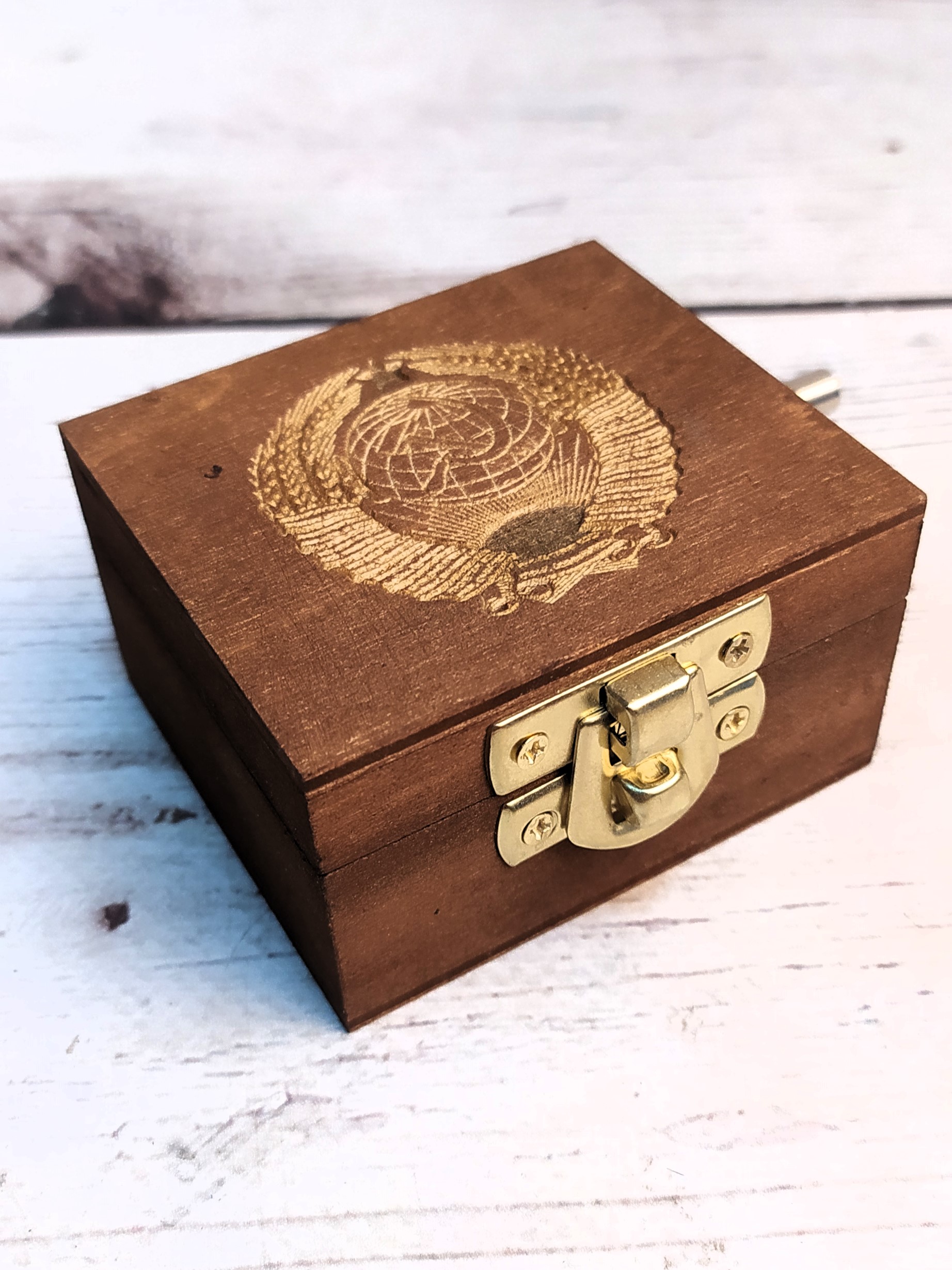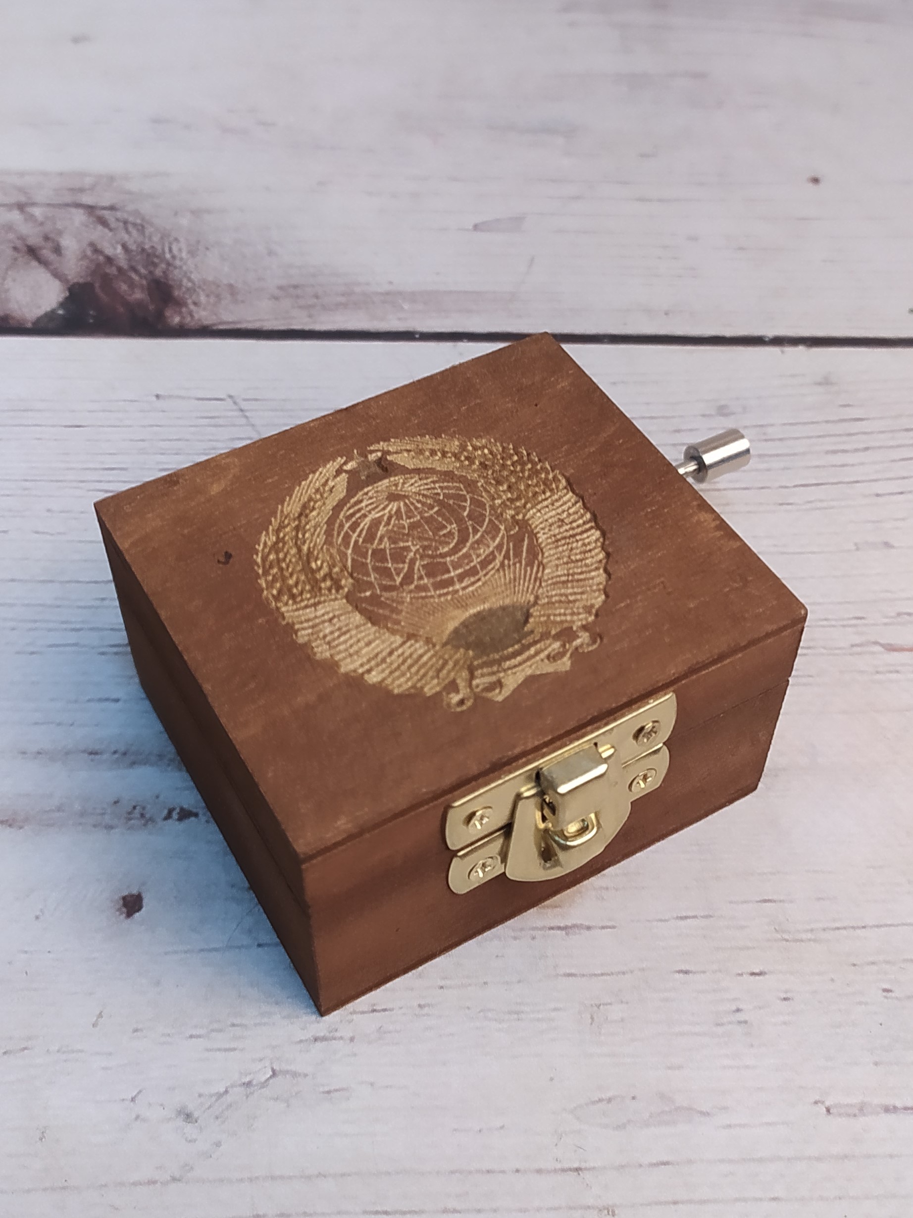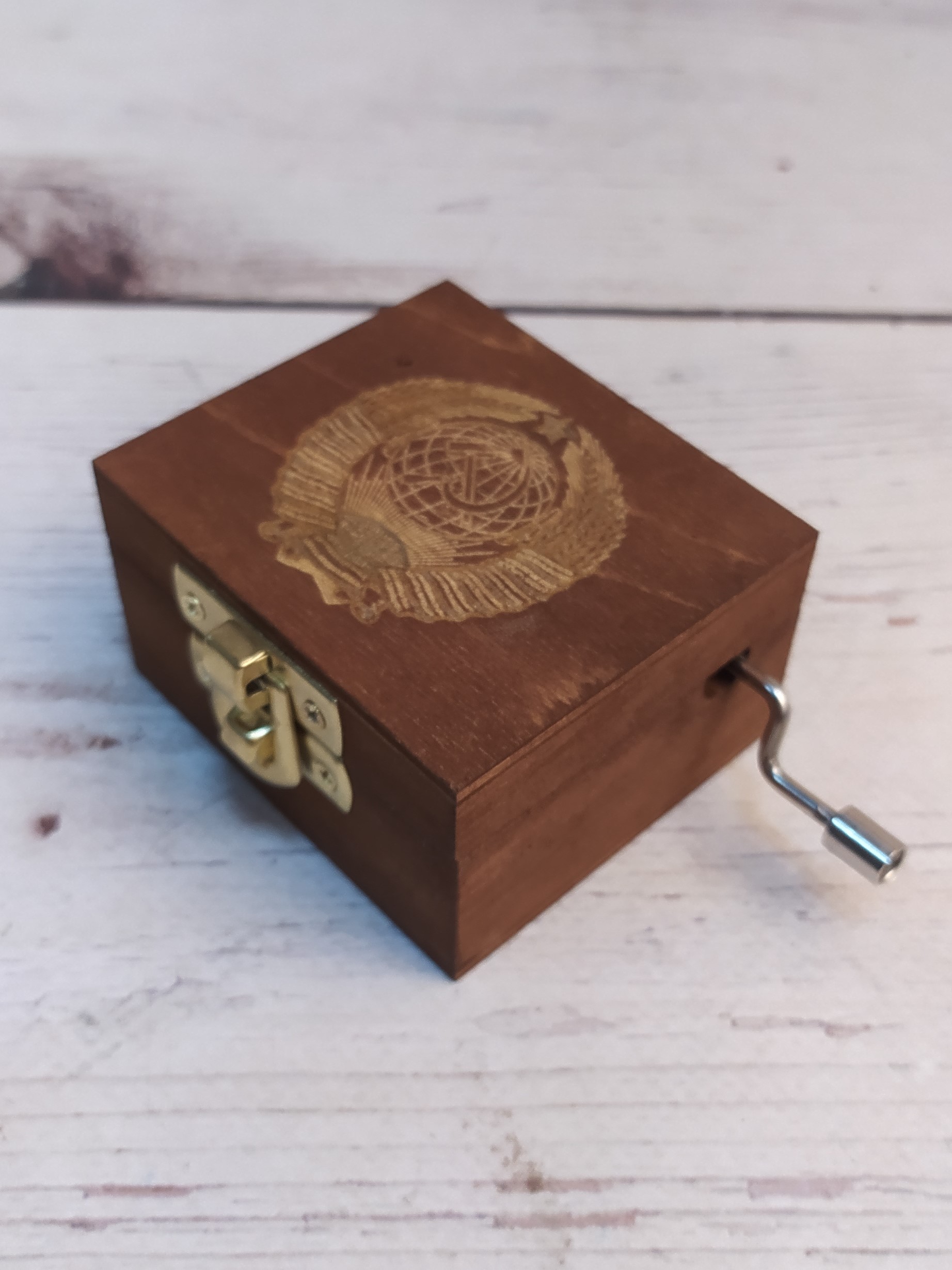 Музыкальная деревянная шкатулка-шарманка из массива СССР гравировка с мелодией Интернационал