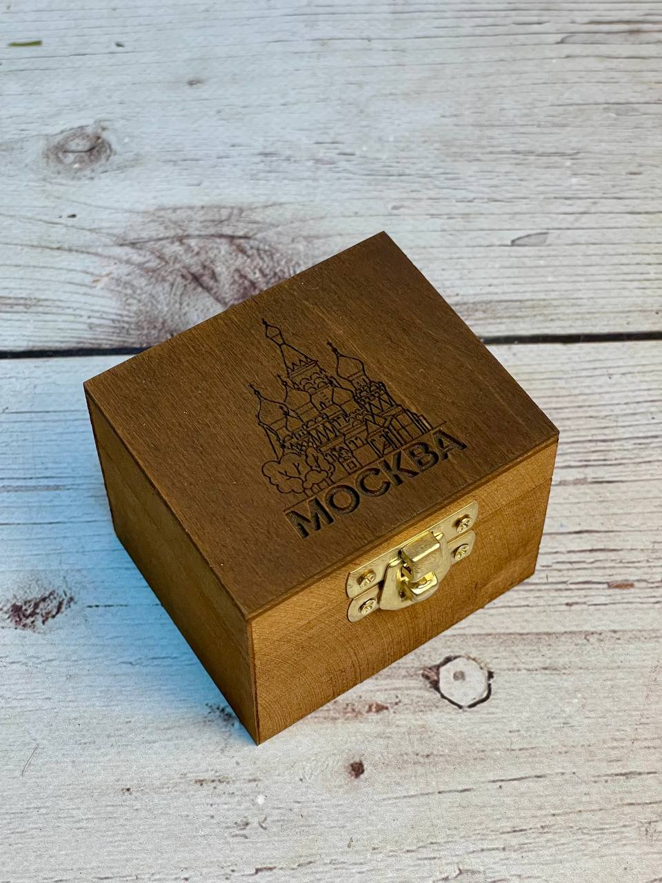 Музыкальная деревянная шкатулка-шарманка Москва с мелодией Подмосковные вечера