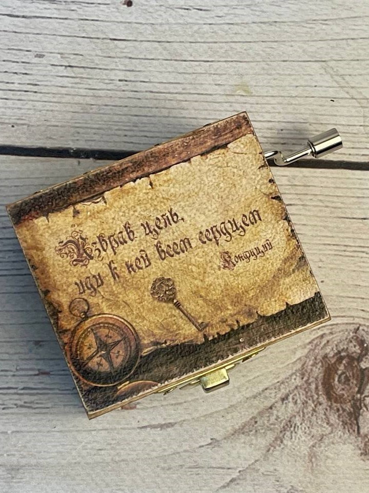 🌳 Почему уникальна? • Ручная работа . • Натуральные материалы — тепло дерева, металлический шильдик/гравировка/принт. • Мини-шедевр — всего 6х5 см, но это полноценный музыкальный механизм.